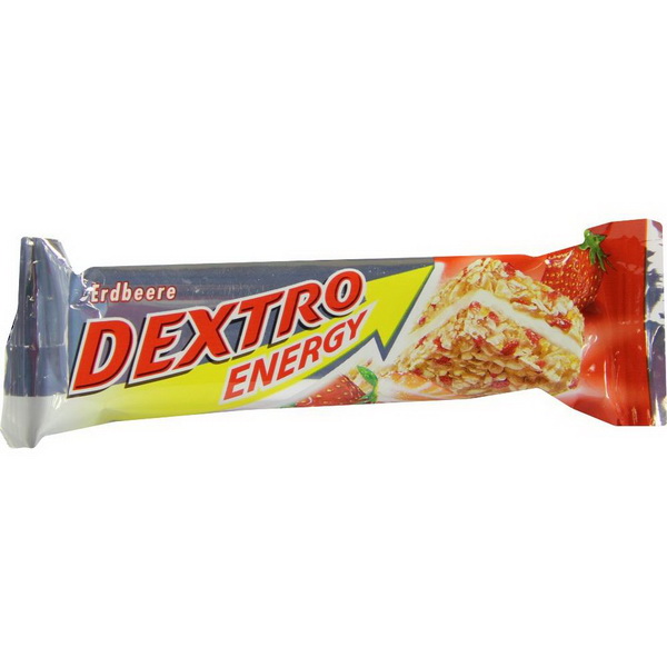 Dextro Energy Riegel in der Sorte Erdbeere sind ideal für den Hunger zwischendurch. Sie enthalten wertvolles Getreide und Dextrose.