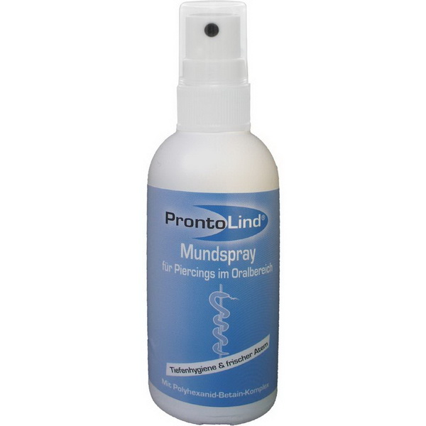 ProntoLind® Mundspray ist ein antibakterielles Spray zur Pflege und Infektionsprophylaxe bei Piercings im Oralbereich. Fördert die Wundheilung und beugt Entzündungen vor.