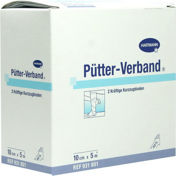 Allgemeine Informationen zu Pütter-Verband® 10cm x 5m2 besonders kräftige Idealbinden für gegenläufige Verbandtechnik, mit kurzem Zug. Dehnbarkeit ca. 90 %, für sehr starke Kompression.