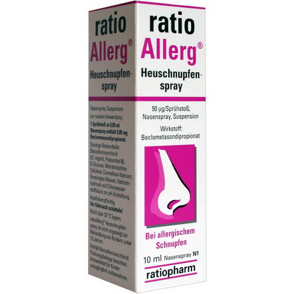 2-mal täglich 2 Einzeldosen (dies entspricht bei einer Einzeldosis von 0,05 mg Beclometasondipropionat 0,1 mg pro Anwendung und 0,2 mg pro Tag) in jedes Nasenloch einsprühen. In vielen Fällen genügt eine weniger häufige Einsprühung in jedes Nasenloch. Sobald die Krankheitszeichen (z. B. Fließschnupfen, verstopfte Nase) sich gebessert haben, sollte die Behandlung mit der niedrigst möglichen Dosis fortgesetzt werden. Es sollte die niedrigste Dosis, mit der eine wirksame Kontrolle der Beschwerden möglich ist, verabreicht werden. Eine Tagesdosis von 8 Einzeldosen (4 Einzeldosen, entspr. 0,2 mg Beclometasondipropionat, pro Nasenloch) sollte normalerweise nicht überschritten werden. ratioAllerg® Heuschnupfenspray eignet sich nicht zur sofortigen Behebung akut auftretender Krankheitszeichen beim allergischen Schnupfen. Die Behandlung mit ratioAllerg® Heuschnupfenspray bessert die diesen Beschwerden zugrundeliegenden Störungen, und eine ausgeprägte Wirkung ist meist innerhalb weniger Tage