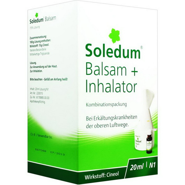 Neben dem stark entzündungshemmenden und zugleich hautfreundlichen Cineol beinhaltet Soledum Balsam zusätzlich eine spezielle hautpflegende Substanz. Aufgrund der ausgezeichneten Verträglichkeit ist Soledum Balsam daher auch für Menschen mit empfindlicher Haut gut geeignet.