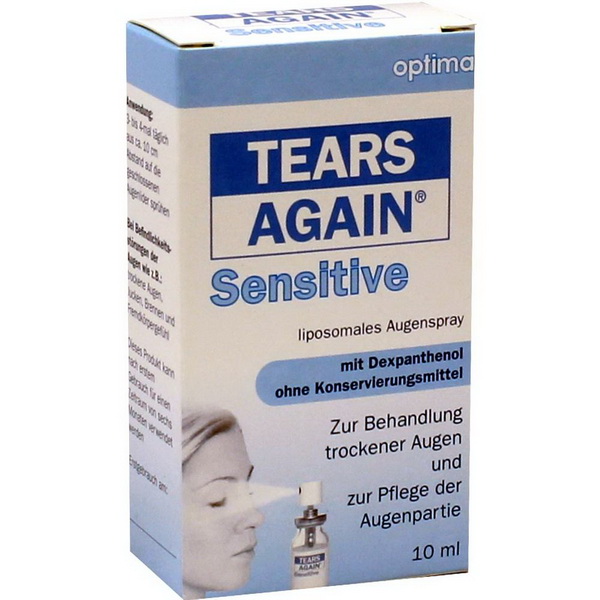 TEARS AGAIN Augenspray Sensitive stabilisiert ebenfalls die schützende Lipidschicht des Tränenfilms ist jedoch ohne Konservierungsmittel und enthält zusätzlich Dexpanthenol zur ergänzenden Pflege und Befeuchtung der Augenpartie als vorbeugenden Schutz der Haut.