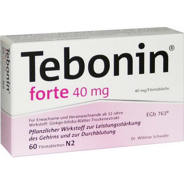 Tebonin® ist ein pflanzliches Arzneimittel und enthält einen Extrakt aus Ginkgo-Blättern, den hoch dosierten Ginkgo-biloba-Spezialextrakt EGb 761®. Der standardisierte Ginkgo-Extrakt wird in einem aufwendigen Verfahren aus den Blättern des Ginkgo-Baums hergestellt, ist in seiner Herstellung vielfach qualitätsgeprüft und entspricht dem höchsten Schwabe-Qualitätsstandard.