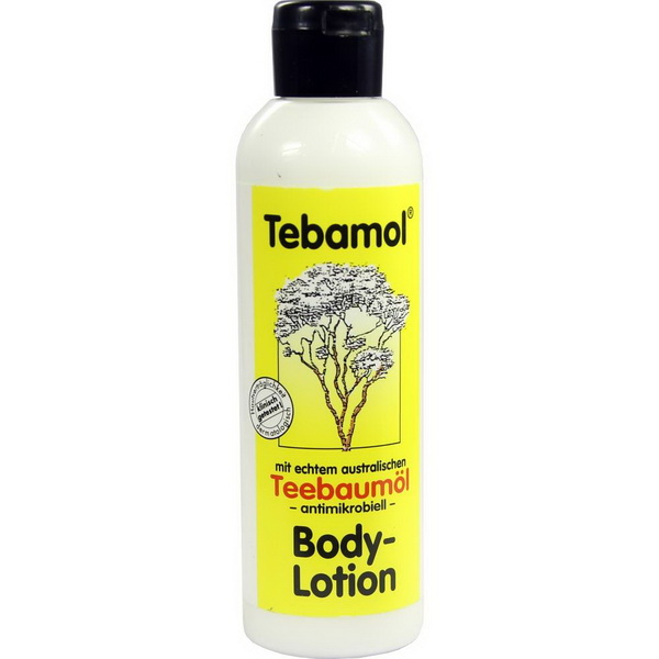 Der bis zu sieben Meter hoch wachsende Baum (Melaleuca alternifolia) ist in den sumpfigen Küstenregionen im Norden des Kontinents beheimatet. Das ätherische Öl befindet sich in den schmalen Blättern sowie in den Spitzen der Zweige. Tebamol® Body Lotion zieht schnell ein und spendet der Haut wertvolle Feuchtigkeit, ist für jeden Hauttyp geeignet und enthält Rosenwasser, Aloe Vera sowie Mandelöl, welches die Haut pflegt und geschmeidig macht.