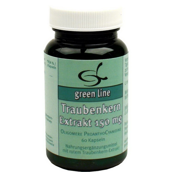 Füllstoff mikrokristalline Cellulose, Roter Traubenkern-Extrakt (enthält oligomere Proanthocyanidine = OPC), Hydroxypropylmethylcellulose
