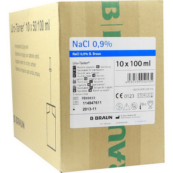 Gebrauchsfertige urologische Spüllösung, mit Katheteranschluss
