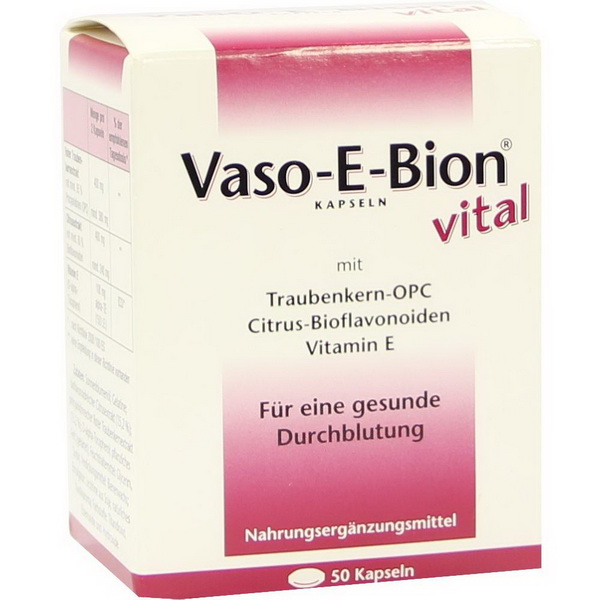 Nahrungsergänzungsmittel mit Rutin, Traubenkern-OPC, Vitamin E und Vitamin C. Für eine normale Funktion der Blutgefäße.