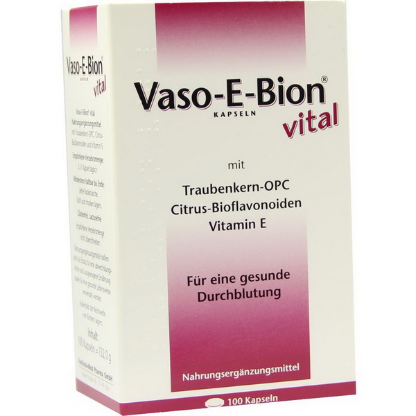 Nahrungsergänzungsmittel mit Rutin, Traubenkern-OPC, Vitamin E und Vitamin C. Für eine normale Funktion der Blutgefäße.