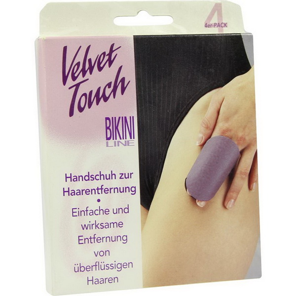 Benutzen Sie den Papierhandschuh mit den natürlichen Überzug zur sanften Entfernung von unerwünschten Haaren in der Bikini-Zone. Kein unangenehmer Geruch noch schmerzhafte Verletzungen, denn die Rasierklinge und Creme gehören der Vergangenheit an.Velvet Touch entfernt Haare auf einfach und wirksame Weise und bedarf weder Wasser noch Elektrizität (ist auch auf Reisen Praktisch). Machen Sie mit dem Handschuh (ohne übermäßigen Druck) leicht kreisende Bewegungen auf der Haut im Bikinibereich, zu entfernen. Die trockene Hautschicht wird dadurch ebenfalls beseitigt und lässt Ihre Haut geschmeidig sanft.