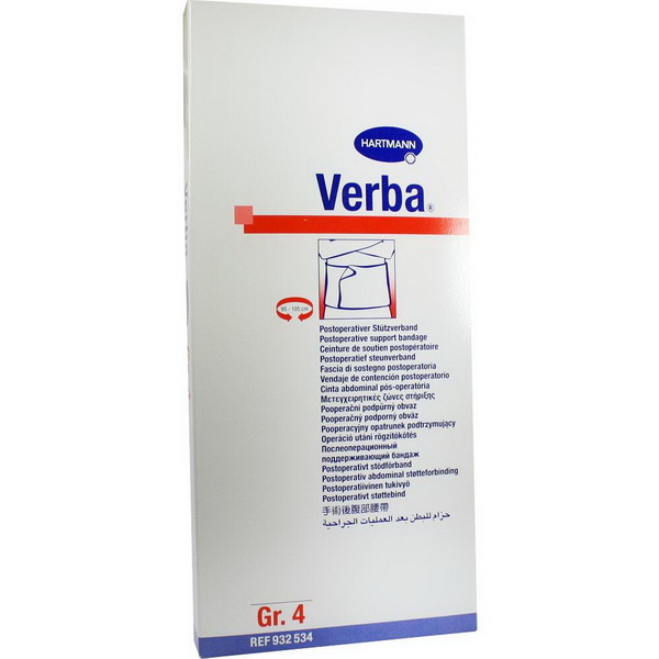 Postoperativer Stützverband, 25 cm breit, mit Klettverschluss; Längselastizität und Querstabilität gewährleisten eine gleichmäßige, flächenhafte Druckverteilung, die Atmung wird nicht behindert; sicherer Sitz ohne Wulst- und Faltenbildung; einfaches Anlegen und durch Klettverschluss leichtes Auswechseln der Wundauflagen; Farbstreifen als Größenkennzeichnung; hautverträglich, luftdurchlässig und kochfest.
