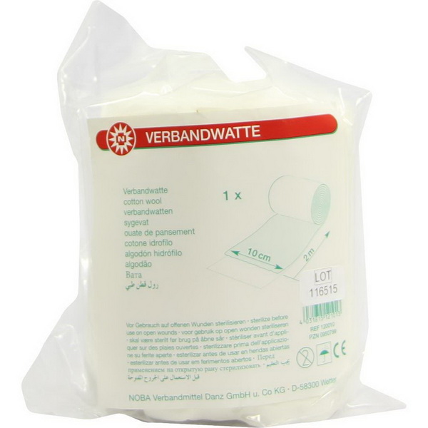 Die Verbandwatte besteht aus Baumwolle und dient zur Polsterung oder zur Fertigung individueller Wattestäbchen.