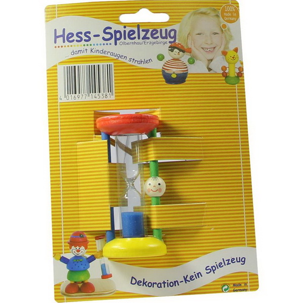 Aus bemaltem Holz. Der Glaskörper ist zusätzlich durch ein Kunststoffröhrchen geschützt.