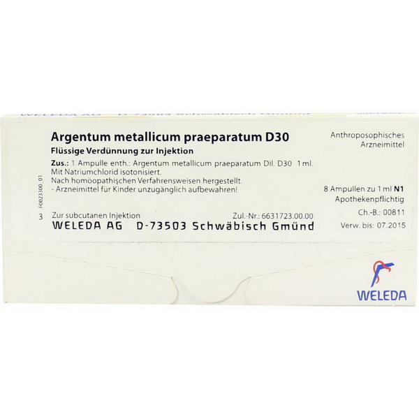 1 Ampulle enthält: Wirkstoff: Argentum metallicum praeparatum Dil. D30 aquos 1 ml.