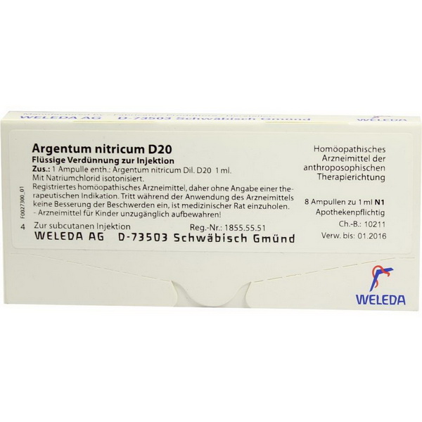 1 Ampulle enthält: Wirkstoff: Argentum nitricum Dil. D20 1 ml. Mit Natriumchlorid isotonisiert.