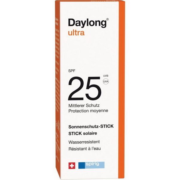 Wasserresistenter Sonnenschutzstift für exponierte Areale wie Lippen, Nase, Wangen, Stirn, Ohren und auch Augenbereich. Hochwirksamer UVA und UVB-Schutz und guter Kälteschutz im Winter. Der Daylong ultra Stick ist ohne Emulgatoren.