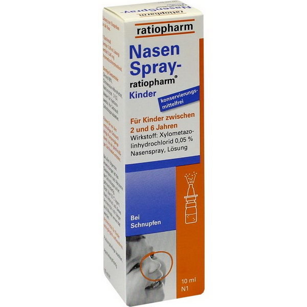 Anwendungsgebiete: NasenSpray Kinder: Zur Abschwellung der Nasenschleimhaut bei Schnupfen, bei anfallsweise auftretendem Fließschnupfen, allergischem Schnupfen.NasenSpray-ratiopharm® Kinder zusätzl.: Zur Erleichterung des Sekretabflusses bei Nasennebenhöhlenentzündungen sowie bei Tubenmittelohrkatarrh in Verbindung mit Schnupfen.NasenSpray Kinder sind für Kinder zwischen 2 und 6 Jahren bestimmt. Zu Risiken und Nebenwirkungen lesen Sie die Packungsbeilage und fragen Sie Ihren Arzt oder Apotheker. Stand: 11/09