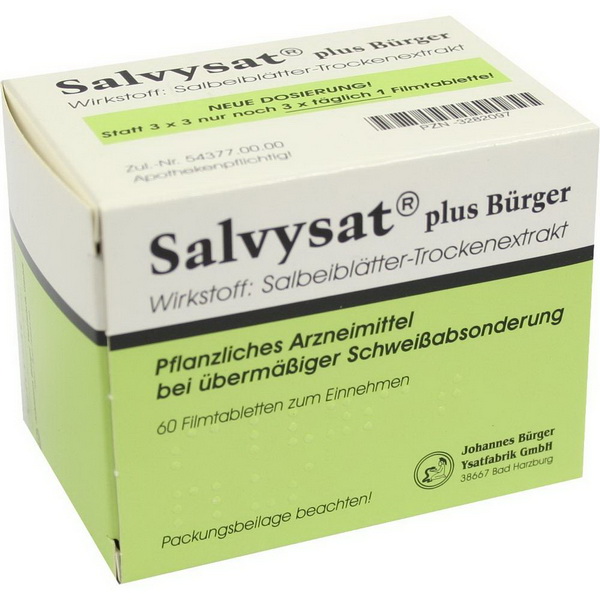Salvysat® Filmtabletten nutzen die heilende Wirkung von Salbeiblättertrockenextrakt. Studien belegen, dass dieser spezifische Extrakt in standardisierter Dosierung die Schweißbildung um deutlich mehr als 50 % reduzieren kann