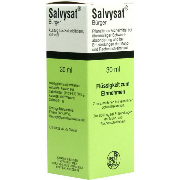 - 800 mg Salbeiblätter-Extrakt (1:2,9-3,1); Auszugsmittel: Wasser