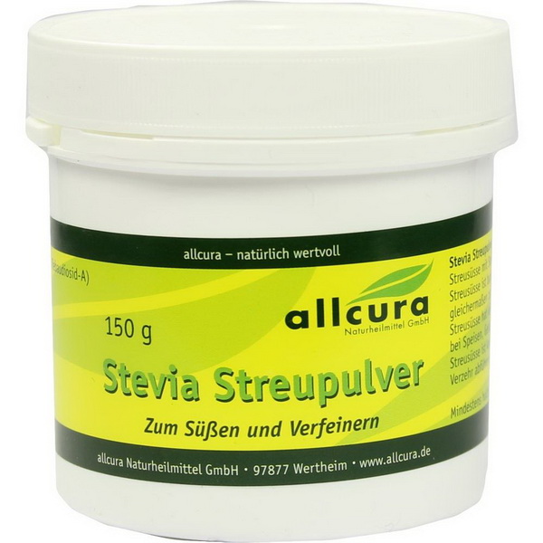 Das Streupulver ist noch ca. 2 mal so stark wie Zucker. Es ist mit Erytrithol verlängert. Einem Stoff der aus Früchten gewonnen wird.