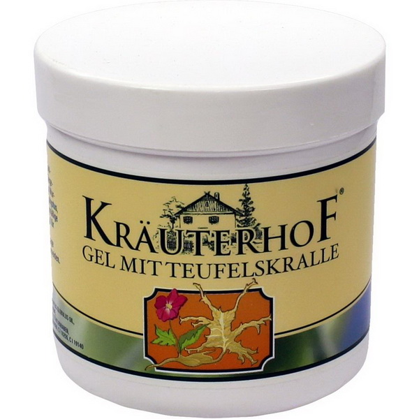 Kräuterhof® Gel mit Teufelskralle dient der erfrischenden Pflege und wohltuenden Massage. Das Körperpflegegel enthält einen Extrakt aus den Wurzeln der Teufelskralle, sowie Eukalyptus, Menthol und Kampfer.