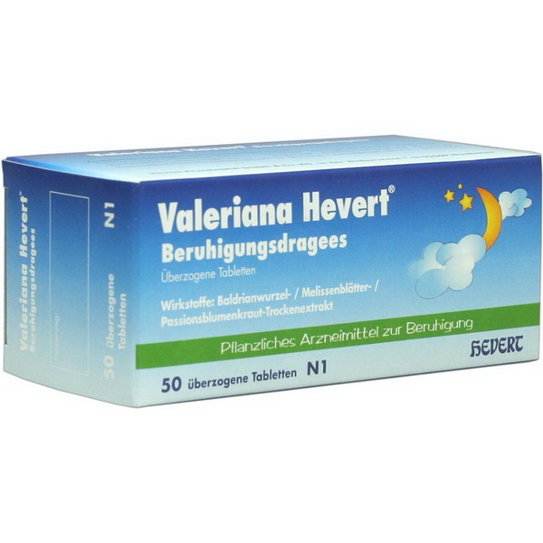 Baldrian wirkt schlafeinleitend, hat aber, wie auch die Passionsblume, keinen negativen Einfluss auf den normalen Schlaf; die physiologischen Traumphasen bleiben erhalten. Außerdem zeichnet sich Baldrian bei nervöser Erschöpfung, geistiger Überarbeitung und motorischer Unruhe als Nervenberuhigungsmittel aus. Tagsüber wirkt Baldrian ausgleichend und beruhigend ohne zu ermüden; abends eingenommen fördert er die Schlafbereitschaft. Baldrian (Valeriana officinalis), auch Katzenwurzel genannt, stammt aus Europa und Asien und wird schon seit Jahrhunderten in der Volksheilkunde als Beruhigungsmittel verwendet. Zur Herstellung von Valeriana Hevert Beruhigungsdragees wird die Wurzel mit ihren wirksamen Bestandteilen, z.B. den Valerensäuren verwendet.